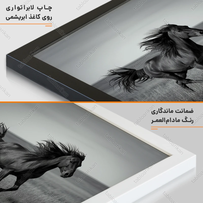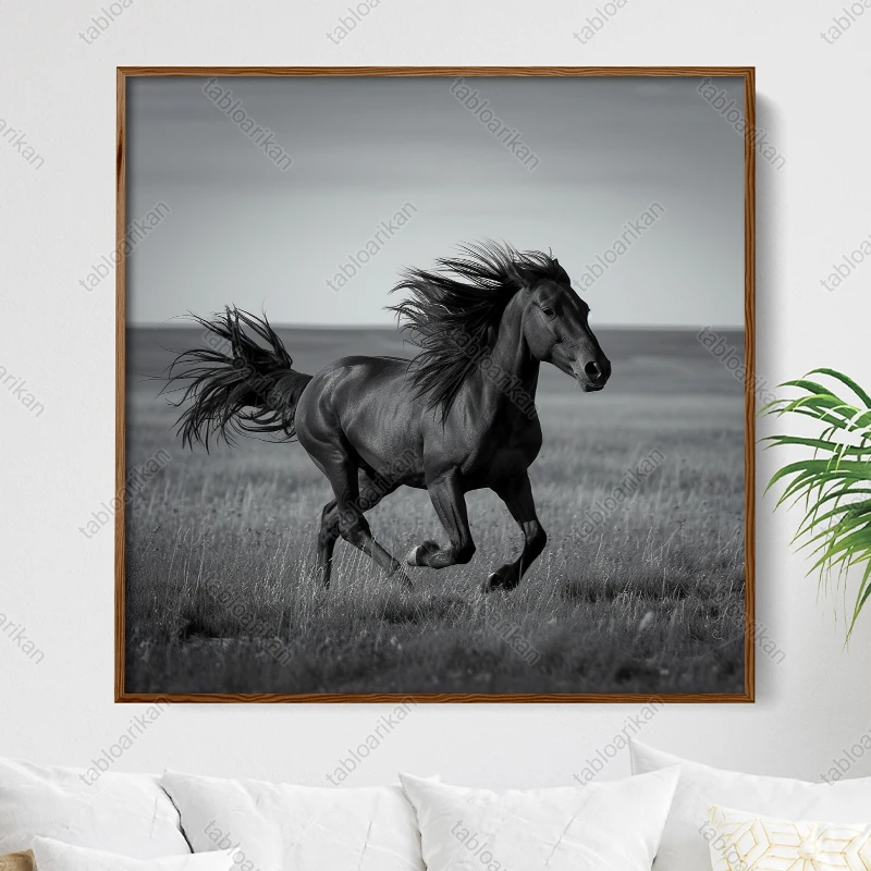 تابلو اسب دونده سیاه و سفید کد TH1014