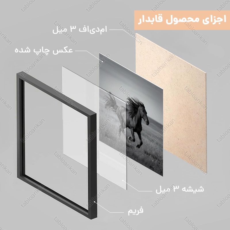 • سفارش قاب به صورت PVC، قاب چوبی و شاسی امکان‌پذیر است