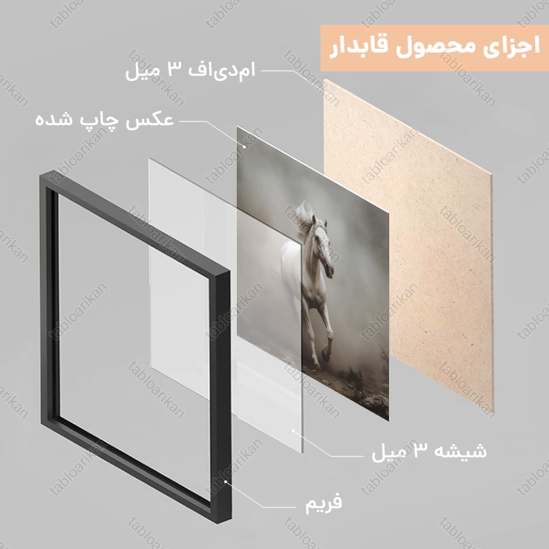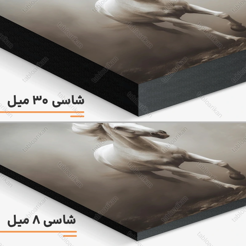 • سفارش قاب به صورت PVC، قاب چوبی و شاسی امکان‌پذیر است