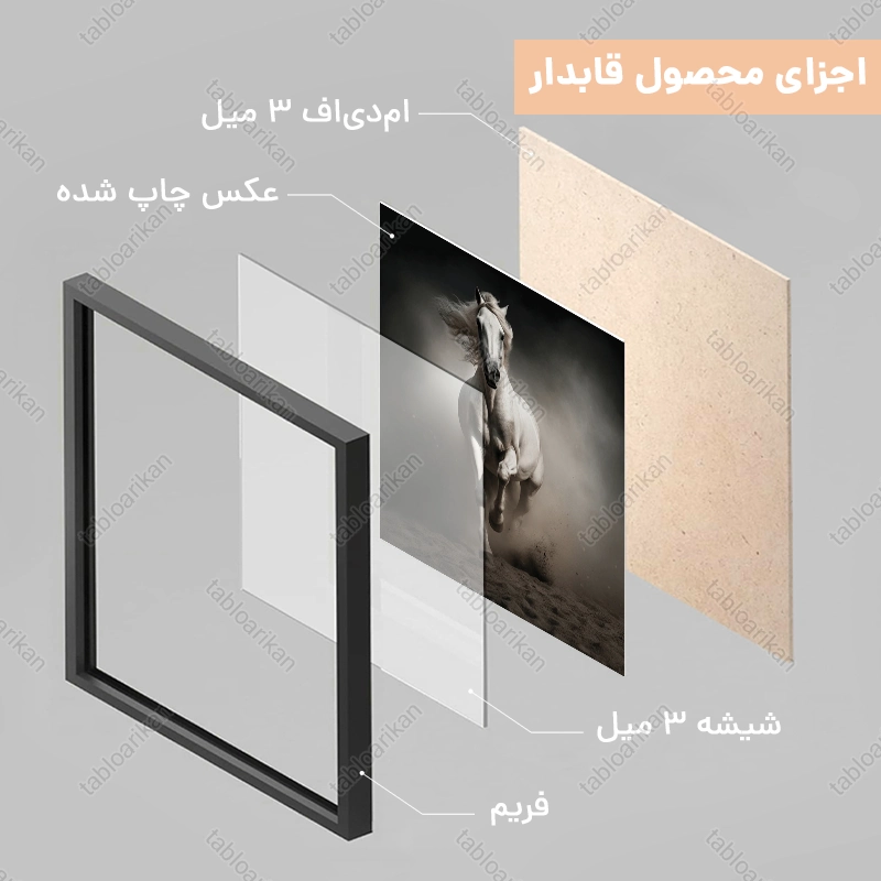• سفارش قاب به صورت PVC، قاب چوبی و شاسی امکان‌پذیر است