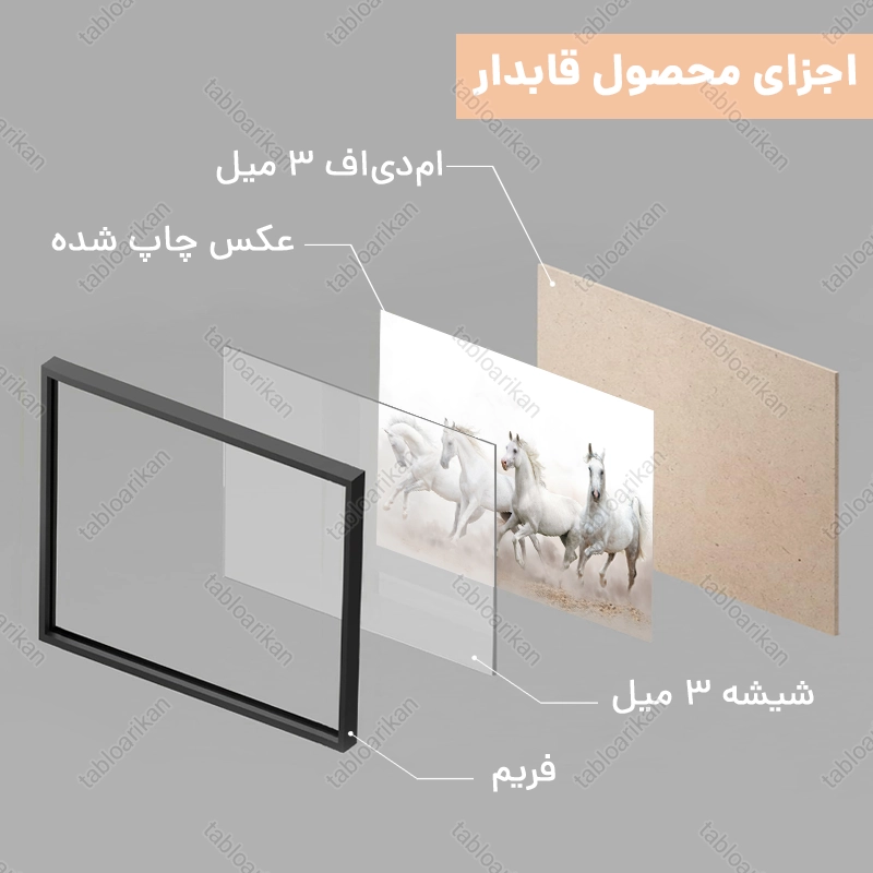 • سفارش قاب به صورت PVC، قاب چوبی و شاسی امکان‌پذیر است