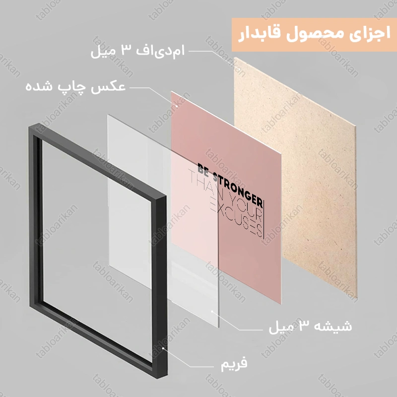 • سفارش قاب به صورت PVC، قاب چوبی و شاسی امکان‌پذیر است