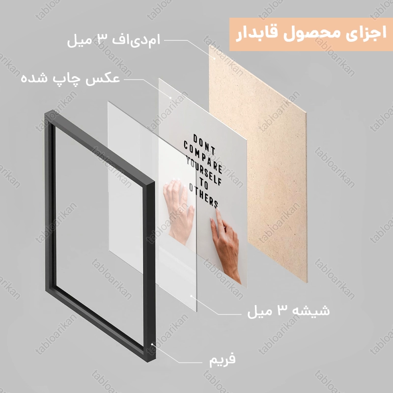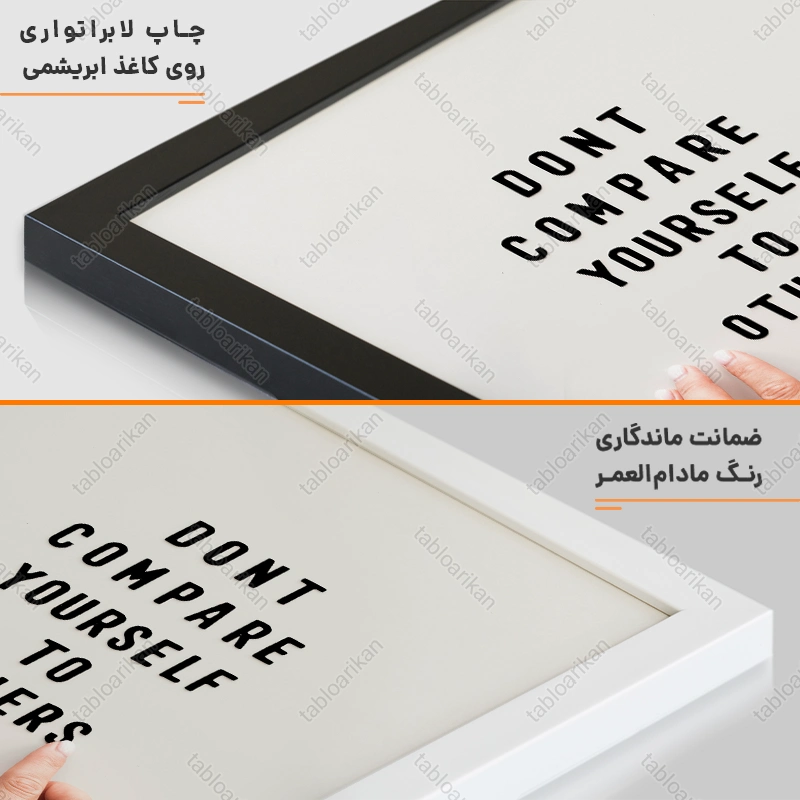 • سفارش قاب به صورت PVC، قاب چوبی و شاسی امکان‌پذیر است