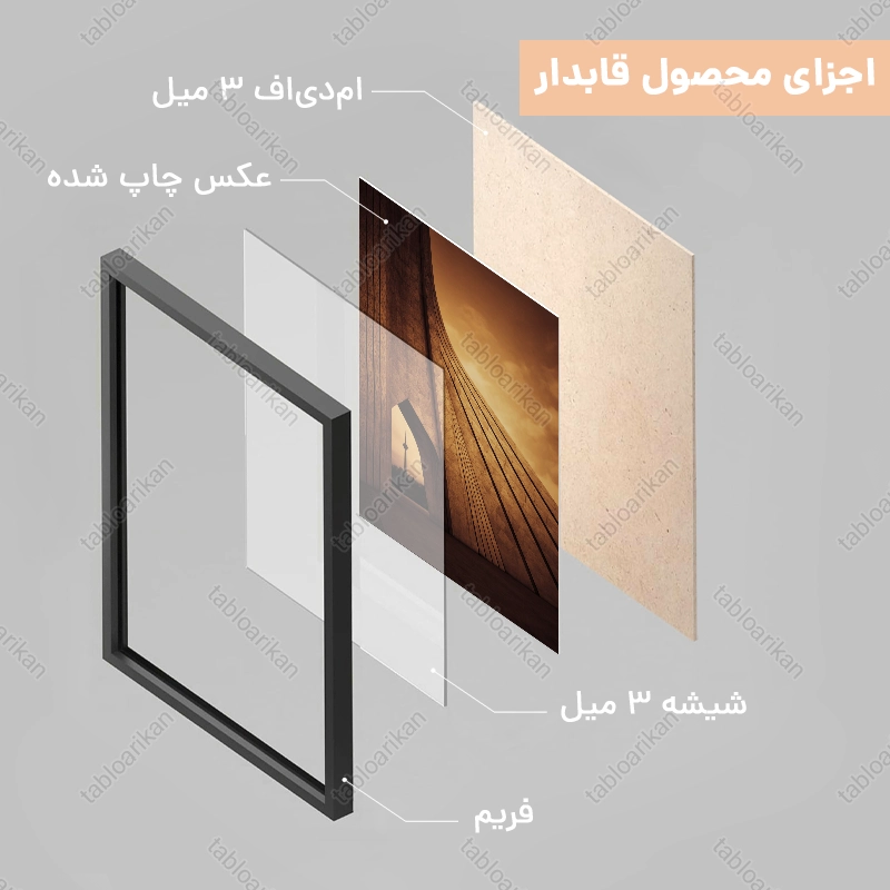 • سفارش قاب به صورت PVC، قاب چوبی و شاسی امکان‌پذیر است
