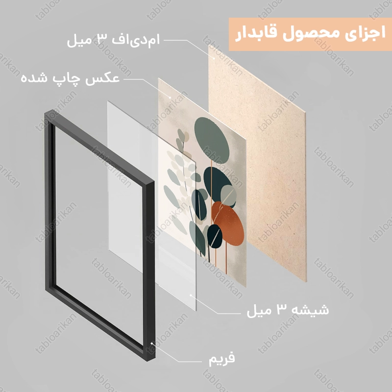 • سفارش قاب به صورت PVC، قاب چوبی و شاسی امکان‌پذیر است