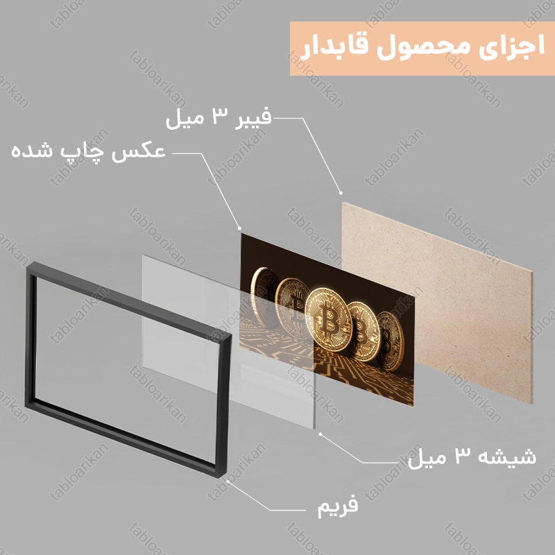 • سفارش قاب به صورت PVC، قاب چوبی و شاسی امکان‌پذیر است