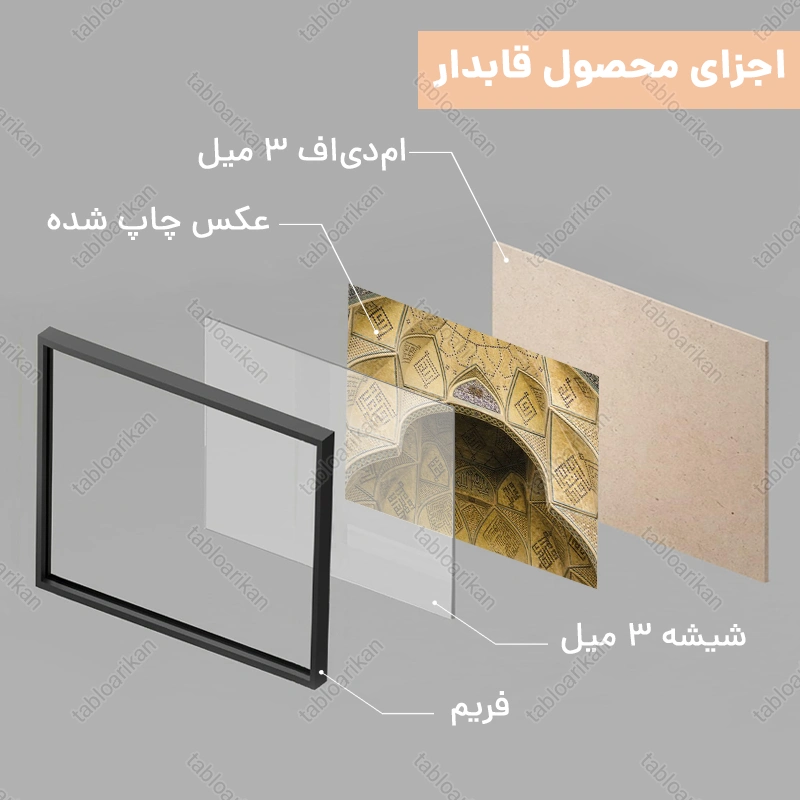 • سفارش قاب به صورت PVC، قاب چوبی و شاسی امکان‌پذیر است