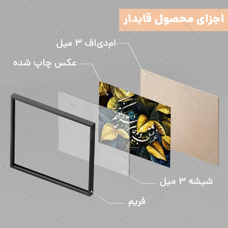 • سفارش قاب به صورت PVC، قاب چوبی و شاسی امکان‌پذیر است