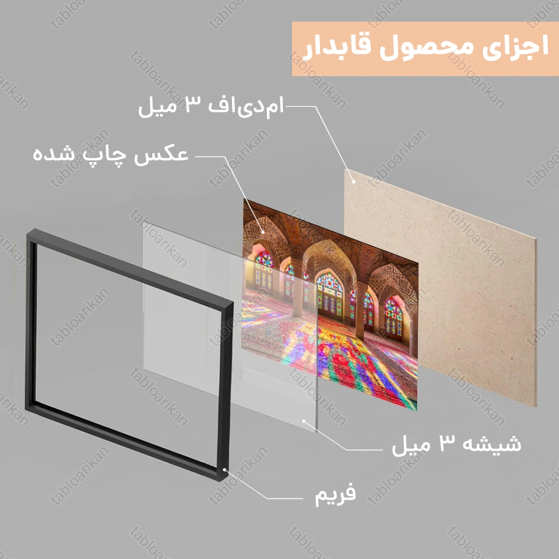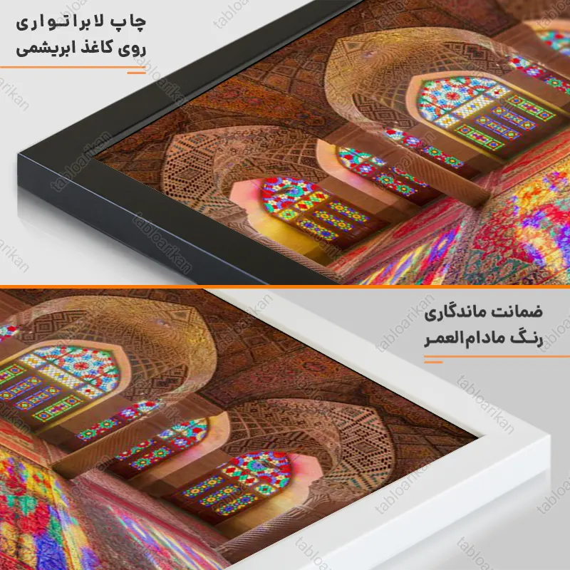 • سفارش قاب به صورت PVC، قاب چوبی و شاسی امکان‌پذیر است