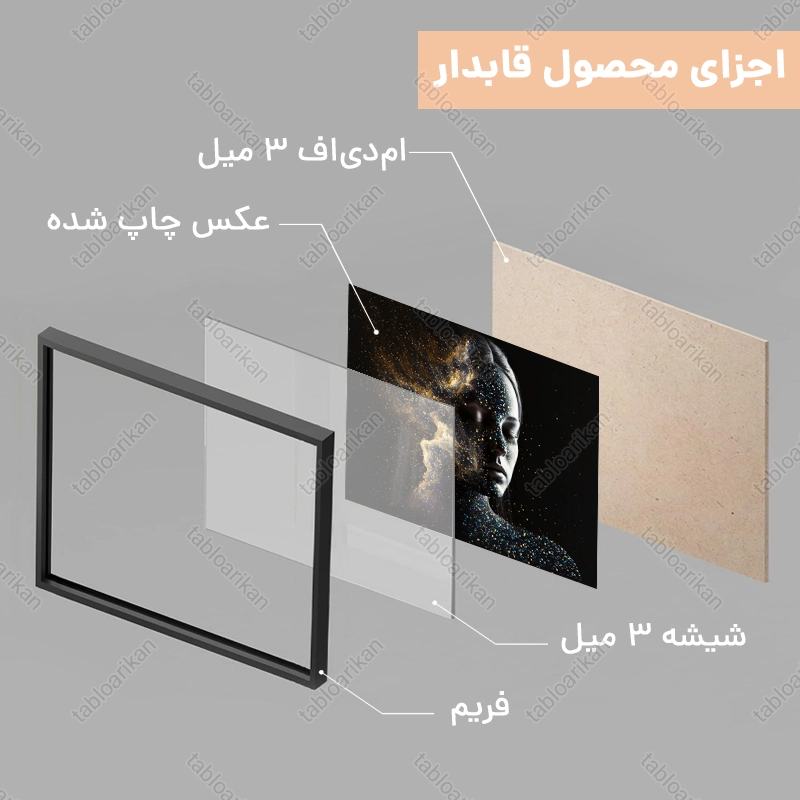 • سفارش قاب به صورت PVC، قاب چوبی و شاسی امکان‌پذیر است