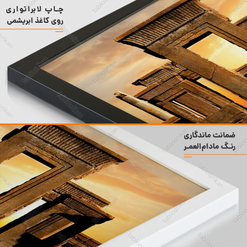 • سفارش قاب به صورت PVC، قاب چوبی و شاسی امکان‌پذیر است