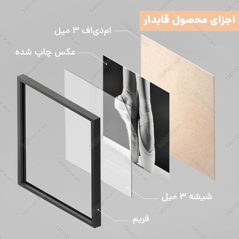 • سفارش قاب به صورت PVC، قاب چوبی و شاسی امکان‌پذیر است