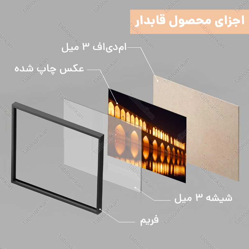 • سفارش قاب به صورت PVC، قاب چوبی و شاسی امکان‌پذیر است