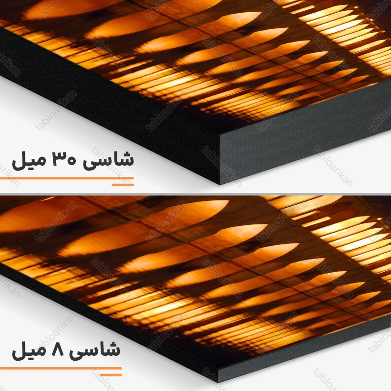• پهنای قاب ها از ۲ سانتی‌متر تا ۵ سانتی‌متر و با شیشه فلوت درجه یک ارائه میشود