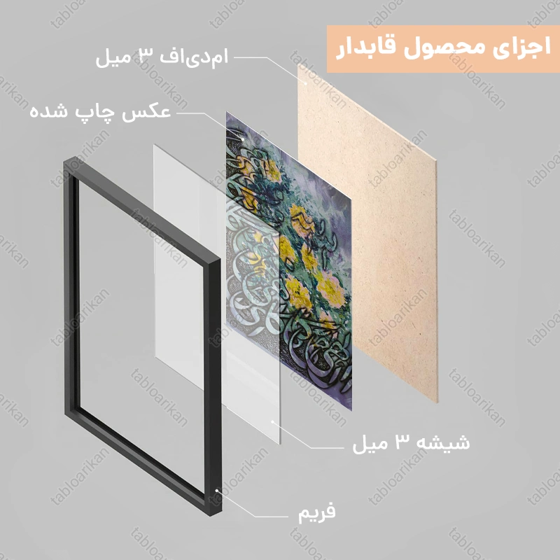 • سفارش قاب به صورت PVC، قاب چوبی و شاسی امکان‌پذیر است