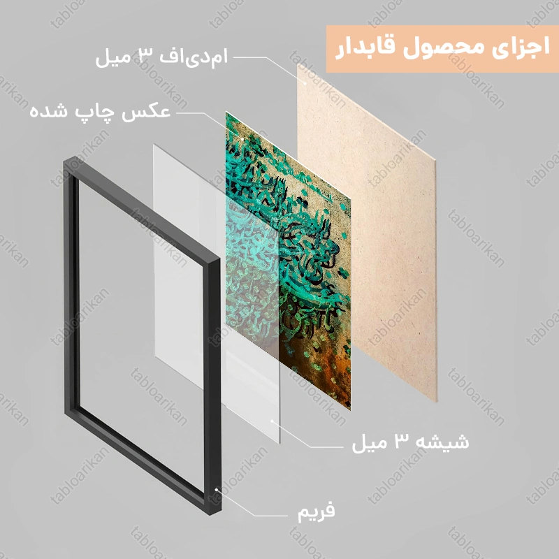 • سفارش قاب به صورت PVC، قاب چوبی و شاسی امکان‌پذیر است