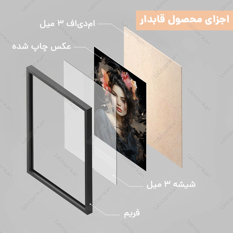 • سفارش قاب به صورت PVC، قاب چوبی و شاسی امکان‌پذیر است