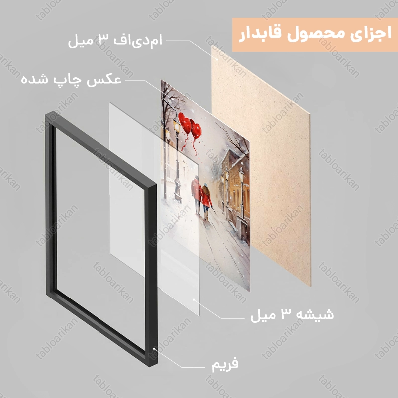 • سفارش قاب به صورت PVC، قاب چوبی و شاسی امکان‌پذیر است