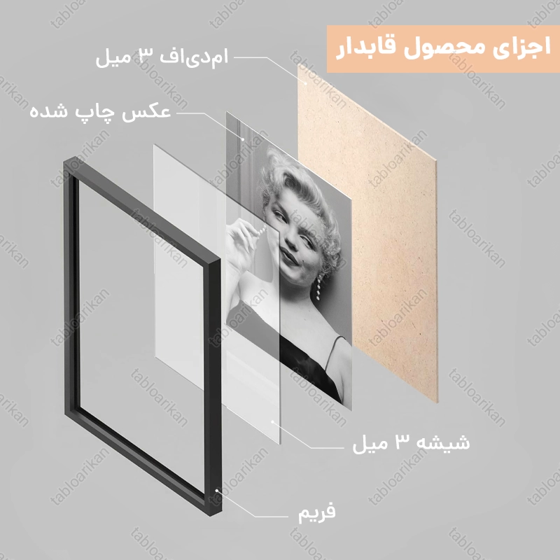 • سفارش قاب به صورت PVC، قاب چوبی و شاسی امکان‌پذیر است