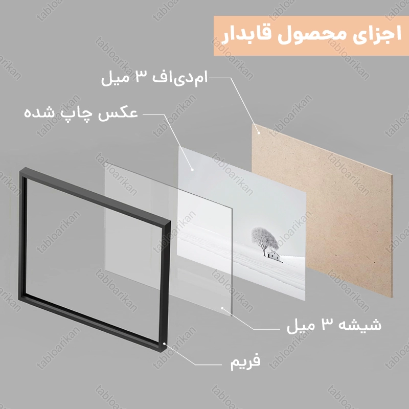 • سفارش قاب به صورت PVC، قاب چوبی و شاسی امکان‌پذیر است