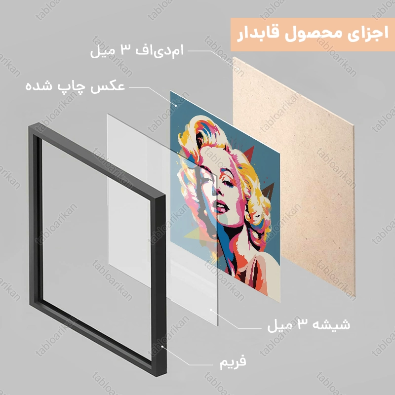 • سفارش قاب به صورت PVC، قاب چوبی و شاسی امکان‌پذیر است