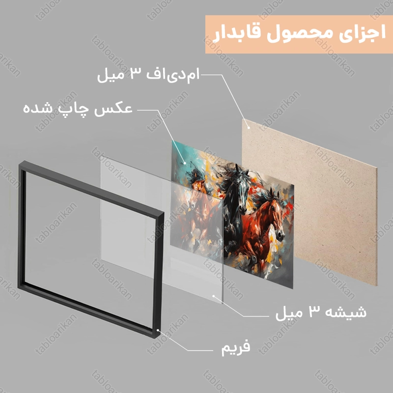 • سفارش قاب به صورت PVC، قاب چوبی و شاسی امکان‌پذیر است