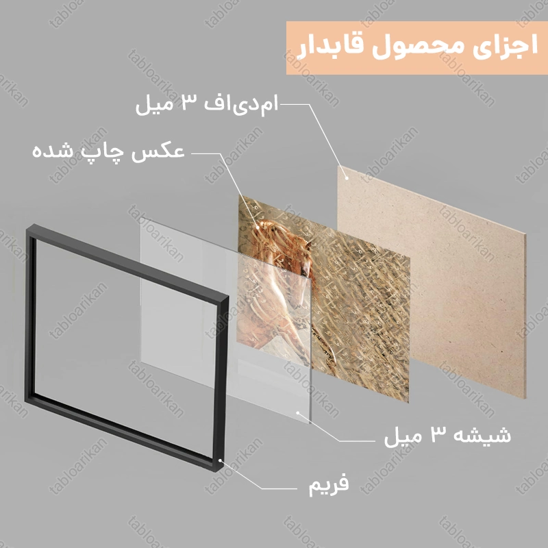 • سفارش قاب به صورت PVC، قاب چوبی و شاسی امکان‌پذیر است