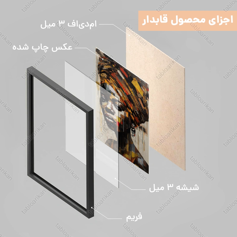 • سفارش قاب به صورت PVC، قاب چوبی و شاسی امکان‌پذیر است