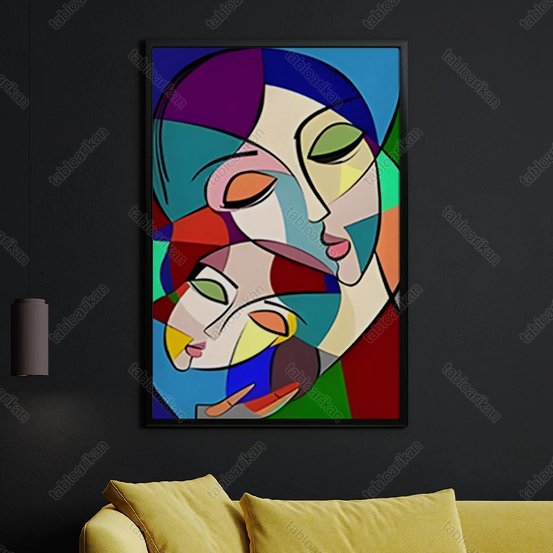 تابلو نقاشی کوبیسم طرح مادر و دختر کد PR1056
