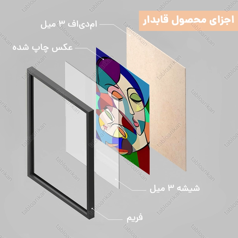 • سفارش قاب به صورت PVC، قاب چوبی و شاسی امکان‌پذیر است