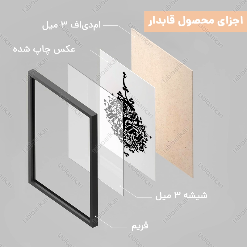 • سفارش قاب به صورت PVC، قاب چوبی و شاسی امکان‌پذیر است