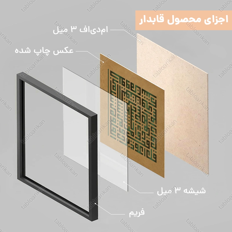 • سفارش قاب به صورت PVC، قاب چوبی و شاسی امکان‌پذیر است