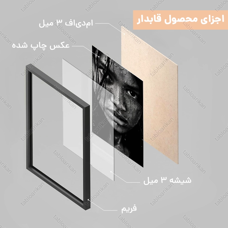 • سفارش قاب به صورت PVC، قاب چوبی و شاسی امکان‌پذیر است