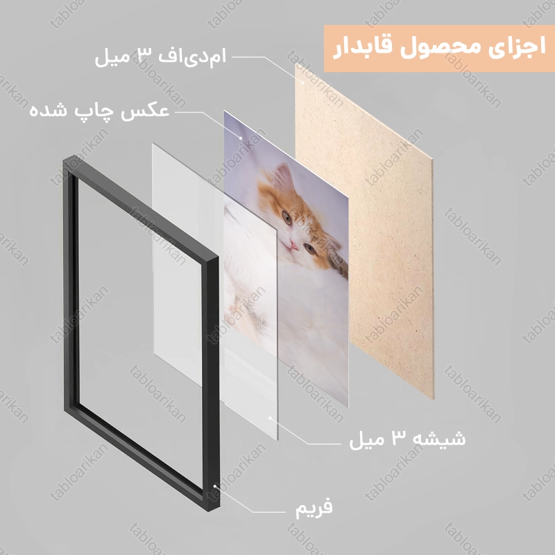 • سفارش قاب به صورت PVC، قاب چوبی و شاسی امکان‌پذیر است