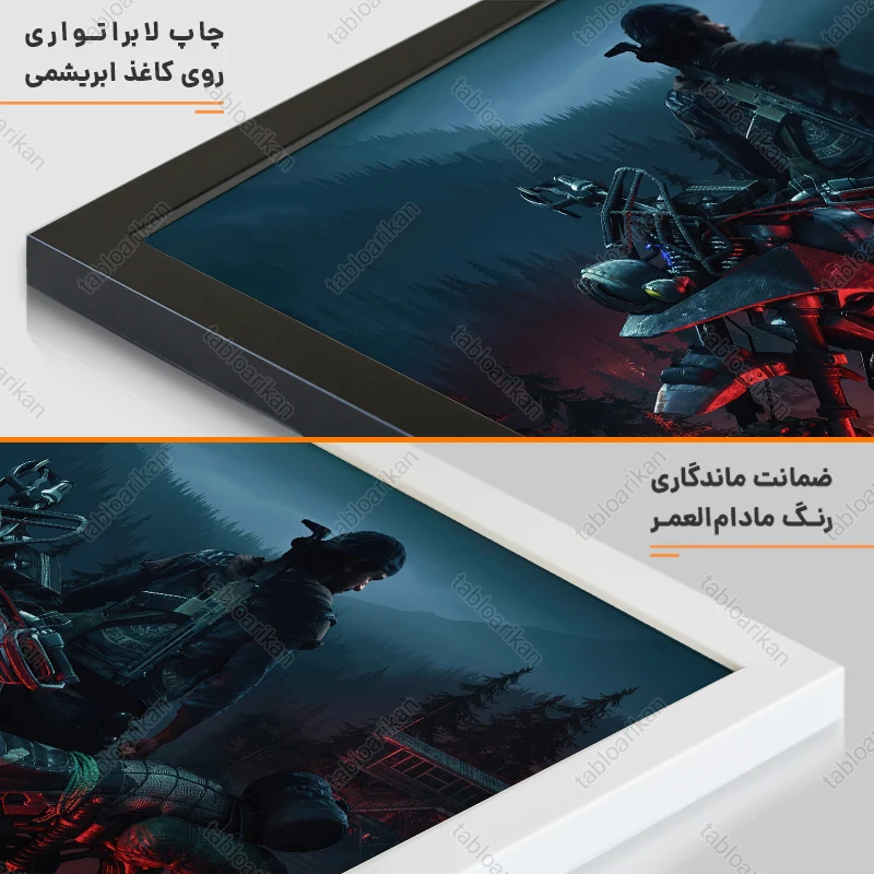 • سفارش قاب به صورت PVC، قاب چوبی و شاسی امکان‌پذیر است
